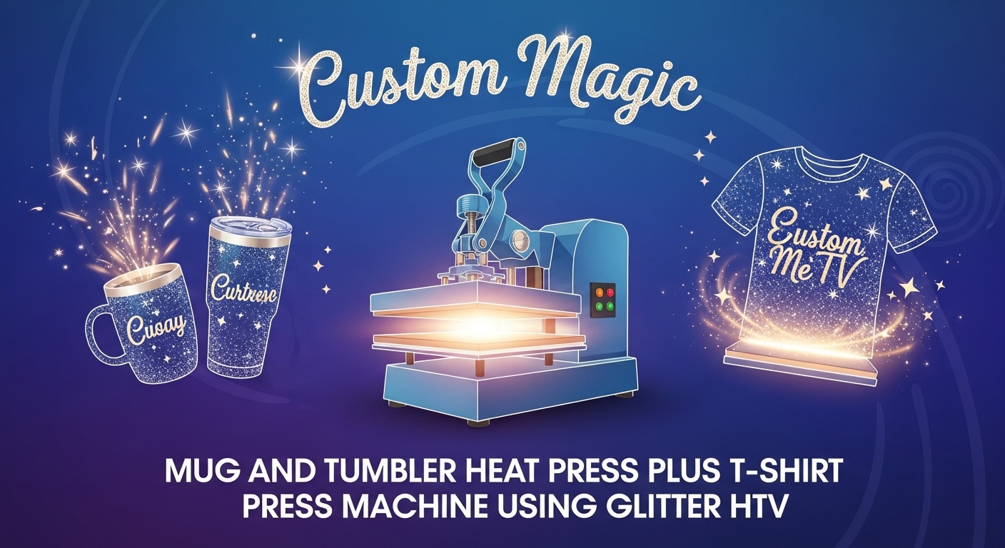 HTV glitter and heat press Custom Magic is used to turn plain mugs, tumblers, and T-shirts into gleaming works of professional art. This approach is efficient and long-lasting and uses colorful and catchy designs that can be used as gifts, for events, or as small business products.